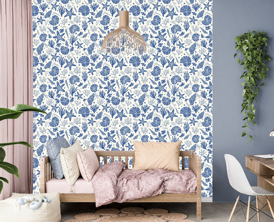 Seashell Wallpaper, Starfish Wallpaper Peel and Stick, Coral Wallpaper, Sea Life Wallpaper, Nursery Wallpaper, Removable Wall Paper