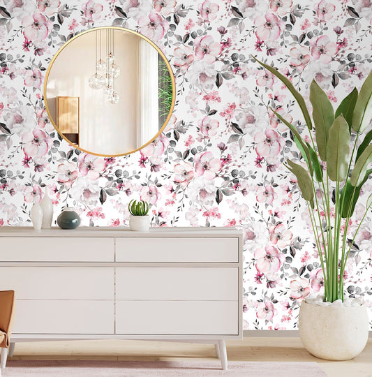 Summer Bloom Wallpaper Peel and Stick, Watrecolor Floral Canvas Removable Wall Paper