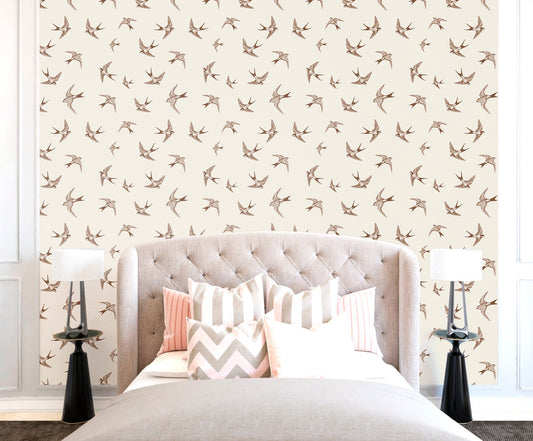 Swallow Wallpaper Peel and Stick, Vintage Canvas Removable Wall Paper