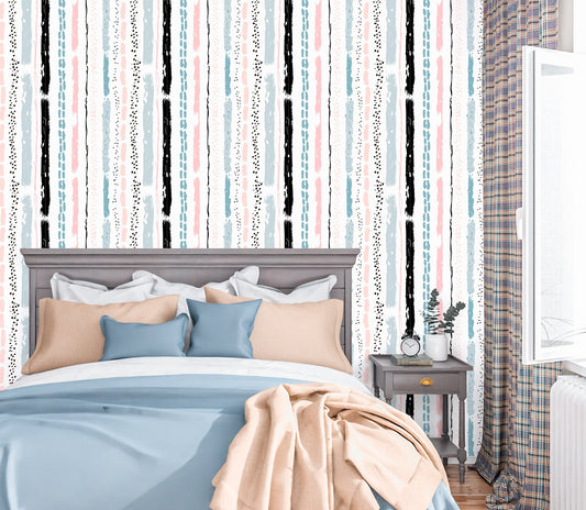 Shabby Stripes Wallpaper Peel and Stick, Brush Stroke Canvas Removable Wall Paper
