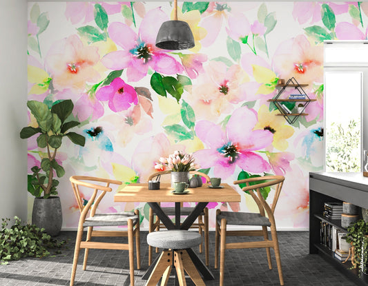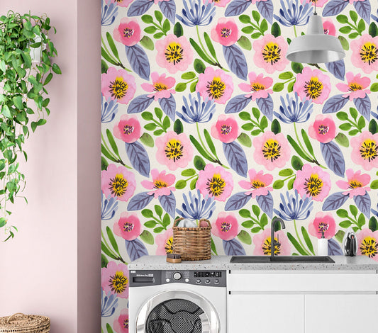 Spring Wallpaper Peel and Stick, Watercolor Floral Wallpaper, Colorful Wallpaper, Big Flower Wallpaper, Removable Wall Paper