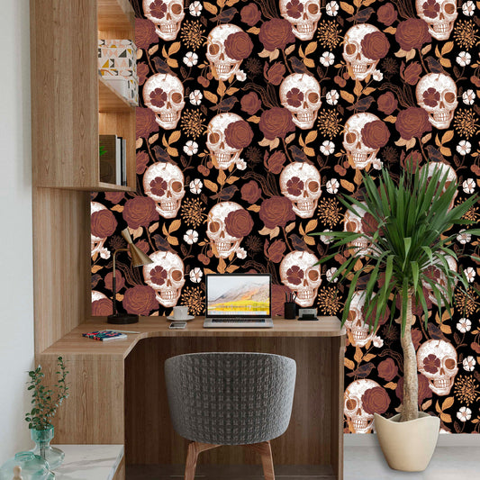 Skull Wallpaper, Dark Floral Wallpaper Peel and Stick, Gothic Wallpaper, Skeleton Wallpaper, Removable Wall Paper