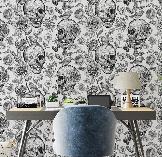 Skull Wallpaper Peel and Stick, Black and White Wallpaper, Removable Wall Paper
