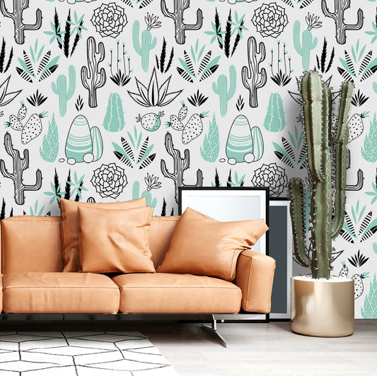 Succulents Wallpaper Peel and Stick, Cactus Wallpaper, Desert Wallpaper, Removable Wall Paper