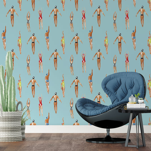 Swimmer Wallpaper Peel and Stick, Retro Sports Removable Wall Paper