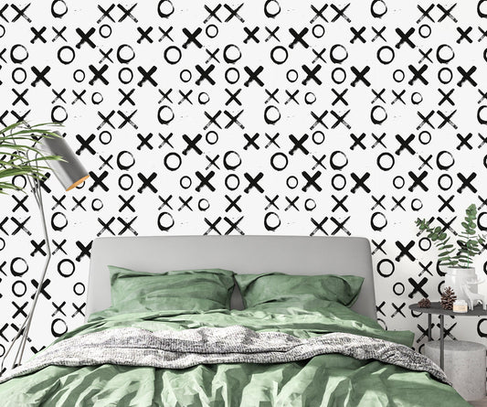 Tic Tac Toe Wallpaper Peel and Stick, Cross and Circle Canvas Removable Wall Paper