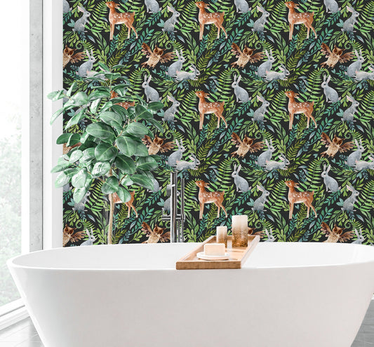 Woodland Wallpaper Animals Wallpaper Black Removable Wallpaper Peel and Stick Wallpaper Mural