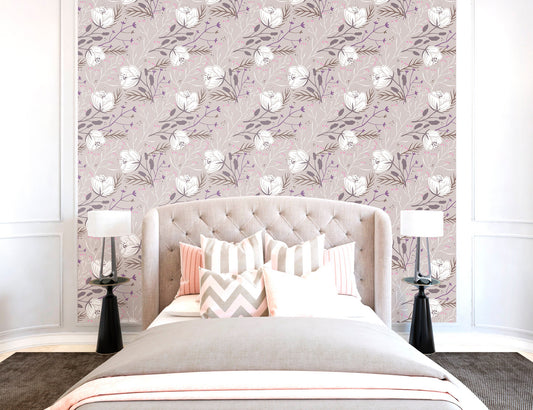 Wildflower Wallpaper Peel and Stick, Big Flowers Wallpaper, Botanical Wallpaper, Nursery Wallpaper, Removable Wall Paper