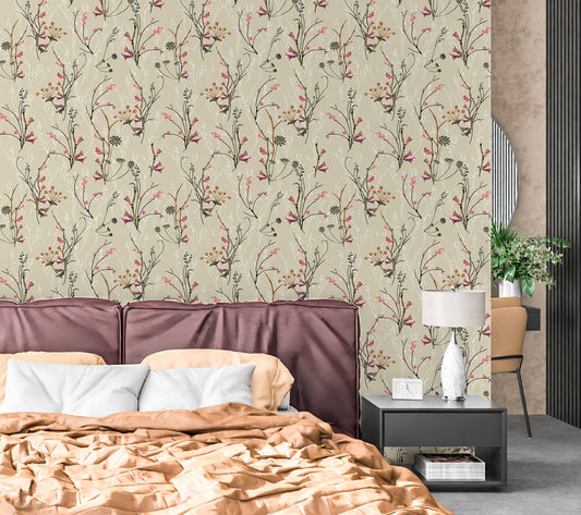 Wildflower Wallpaper Peel and Stick, Beige Floral Canvas Removable Wall Paper