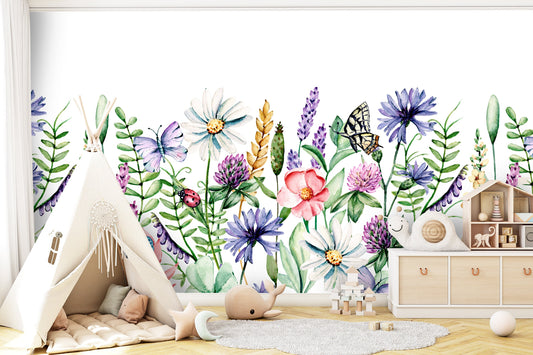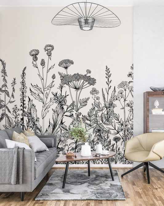 Wildflower Wallpaper Peel and Stick Mural Boho Botanical Removable Wall Paper