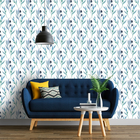 Wildflower Wallpaper Peel and Stick, Blue Floral Wallpaper, Removable Wall Paper