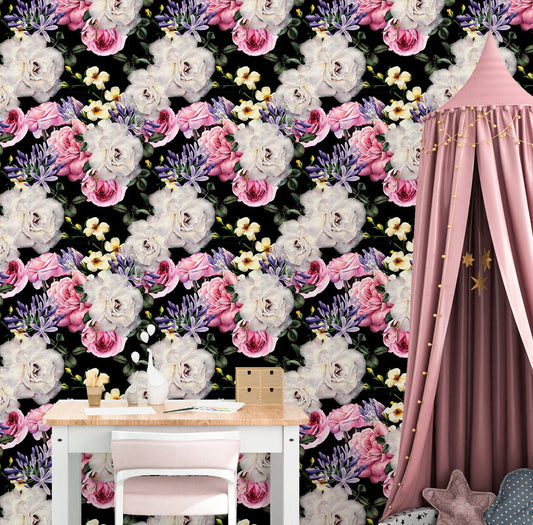 Big Flower Wallpaper Peel and Stick, Dark Floral Wallpaper, Removable Wall Paper