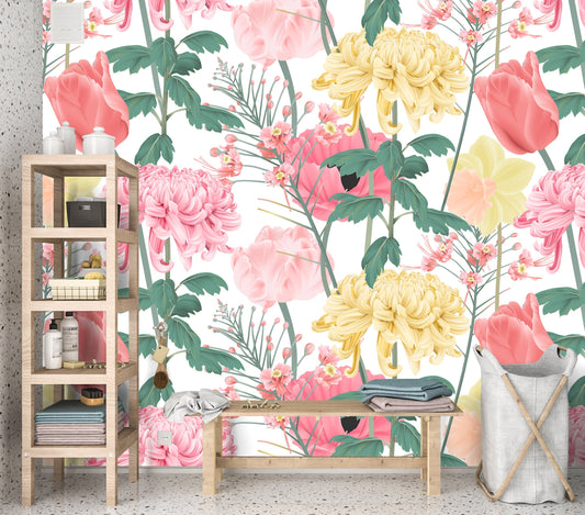 Big Flower Wallpaper Peel and Stick, Tulip Poppy Nature Canvas Removable Wall Paper