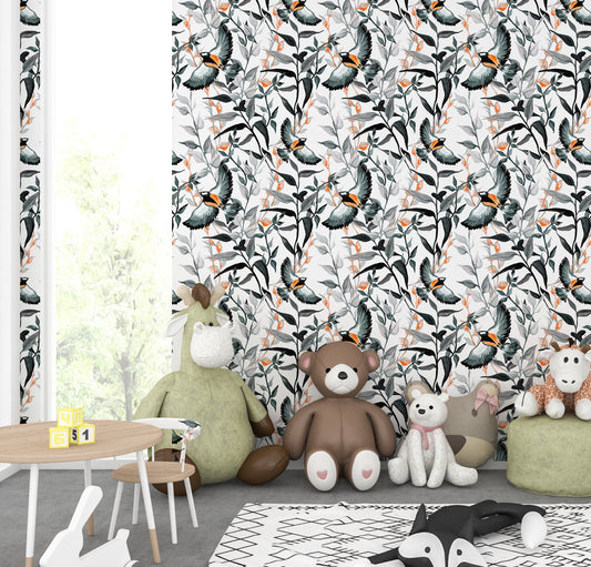 Bird Wallpaper Peel and Stick, Black and White Nature Removable Wall Paper