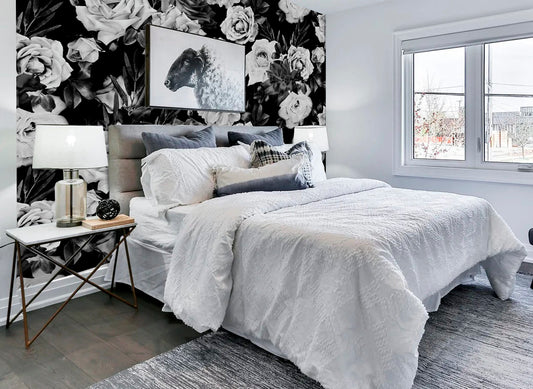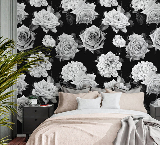 Black and White Rose Wallpaper Peel and Stick, Big Flower Wallpaper, Removable Wall Paper