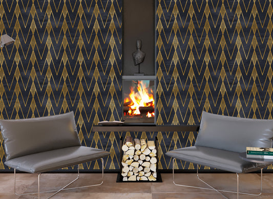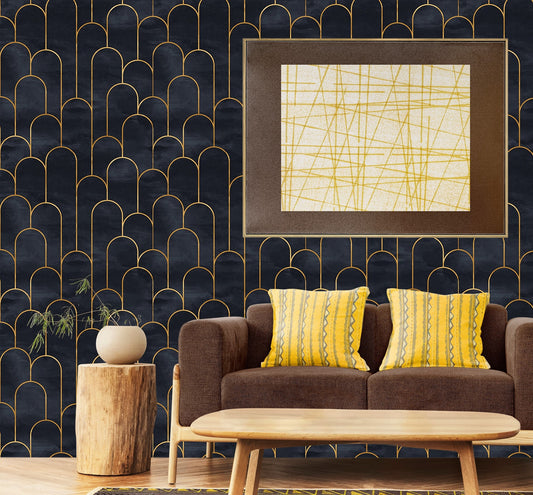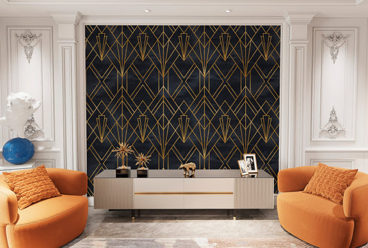 Black Gold Wallpaper Peel and Stick, Art Deco Wallpaper, Geometric Wallpaper, Vintage Wallpaper, Removable Wall Paper