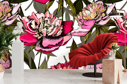 Bold Wallpaper Peel and Stick, Big Flower Wallpaper, Peony Wallpaper, Removable Wall Paper
