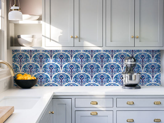 Blue Tile Wallpaper Peel and Stick, Kitchen Wallpaper, Bathroom Removable Wall Paper