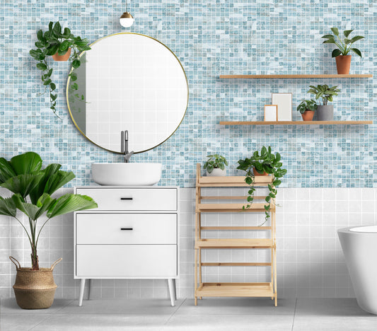 Blue Tile Wallpaper Peel and Stick, Mosaic Wallpaper for Kitchen, Turquoise Wallpaper Bathroom, Geometric Wallpaper, Removable Wall Paper