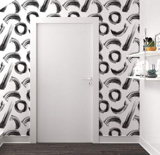 Brush Stroke Wallpaper Peel and Stick, Black and White Absrtact Removable Wall Paper