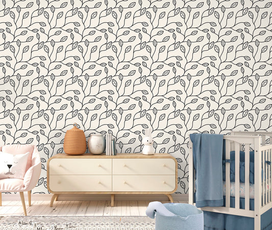 Branch Wallpaper Peel and Stick, Beige Leaves Canvas Removable Wall Paper