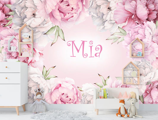Girls Room Wallpaper, Custom Wallpaper Peel and Stick, Peony Wallpaper, Pink Floral Wallpaper, Nursery Wallpaper, Removable Wall Paper