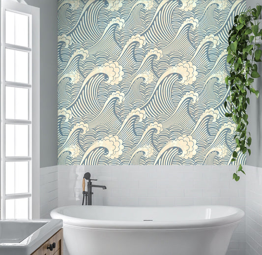 Waves Wallpaper Peel and Stick, Big Wave Wallpaper, Ocean Wallpaper, Ocean Wall Mural, Kids Room Wallpaper, Removable Wall Paper
