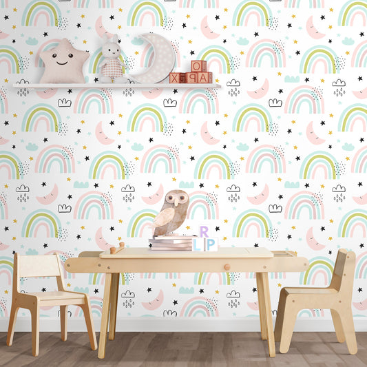 Moon Star Wallpaper Peel and Stick, Rainbow Wallpaper, Boys Room Wallpaper, Girls Room Wallpaper, Removable Wall Paper