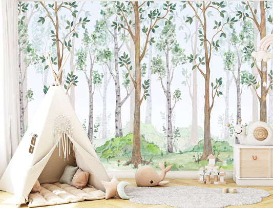 Magic Forest Wallpaper Peel and Stick, Kids Room Wallpaper, Removable Wall Paper
