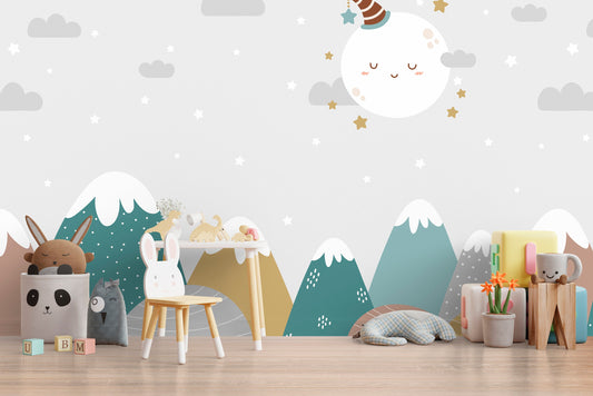 Nursery Wallpaper Mountains. Peel and Stick Wallpaper, Kids Room Wallpaper, Removable Wall Paper