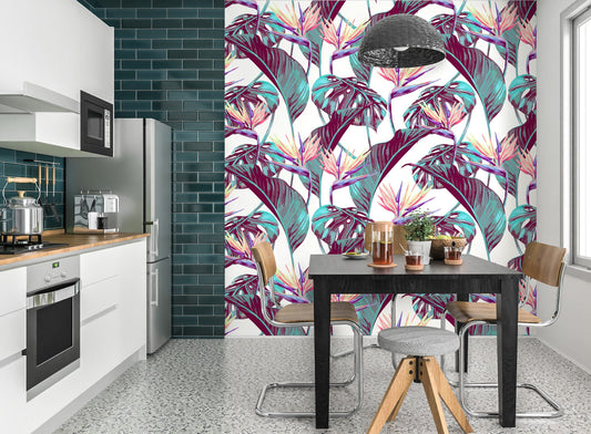 Exotic Wallpaper Peel and Stick, Colorful Wallpaper, Tropical Wallpaper, Palm Leaf Wallpaper, Removable Wall Paper