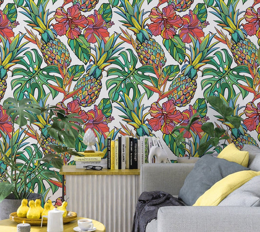 Pineapple Wallpaper Peel and Stick, Monstera Wallpaper, Tropical Wallpaper, Removable Wall Paper