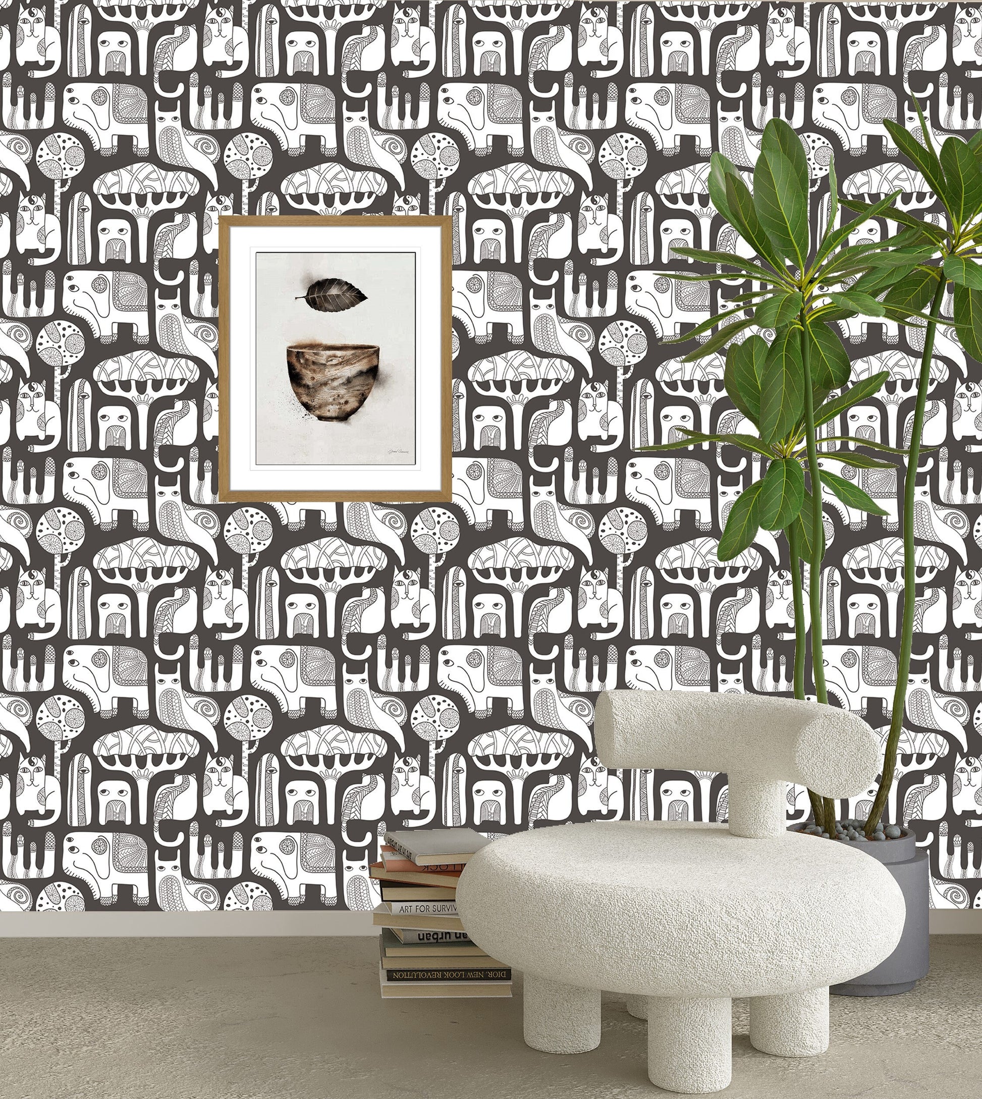 African Wallpaper Peel and Stick, Elephant Wallpaper, Cat Wallpaper, Boho Wallpaper, Removable Wall Paper