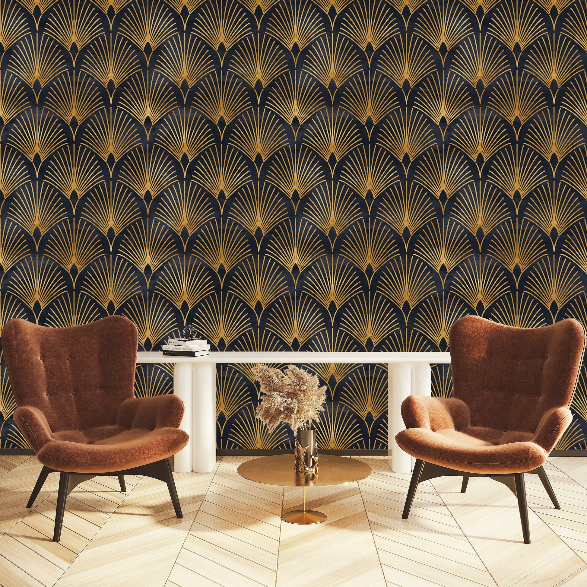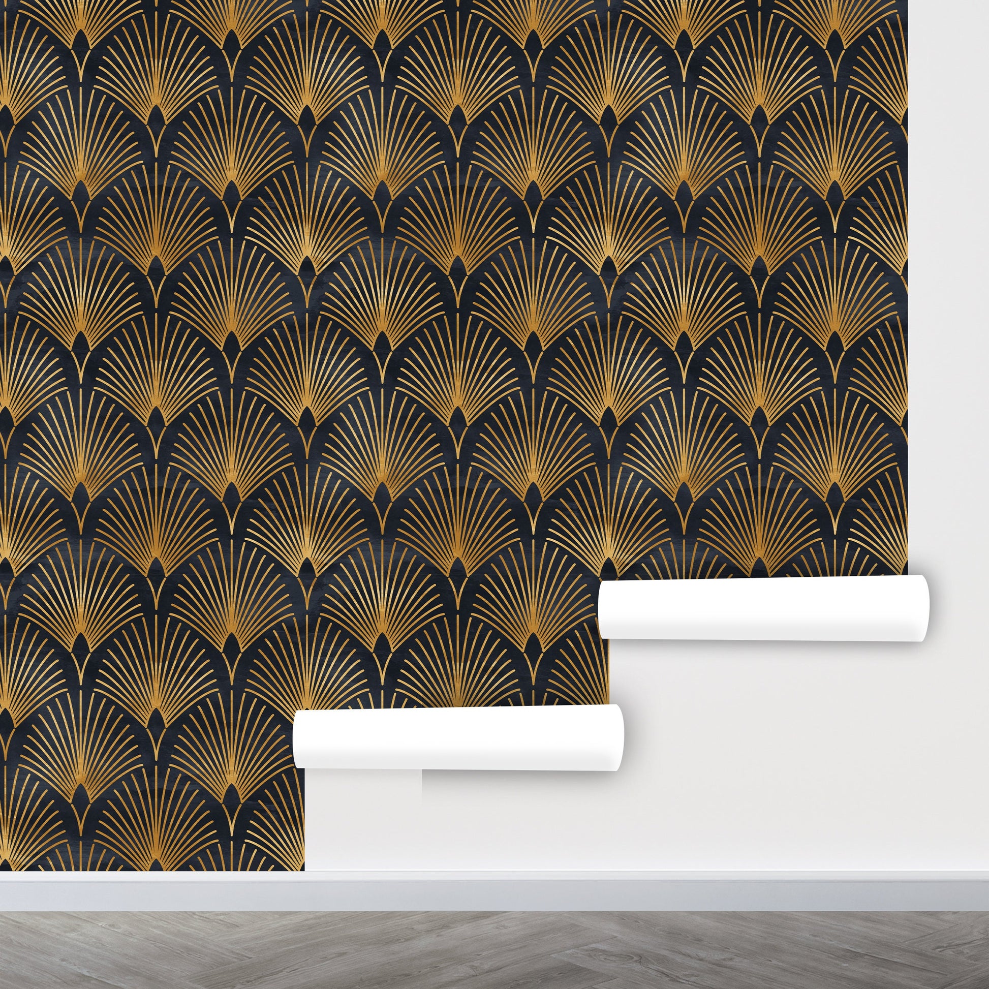 Arches Wallpaper Peel and Stick, Black Gold Wallpaper, Art Deco Wallpaper, Removable Wall Paper