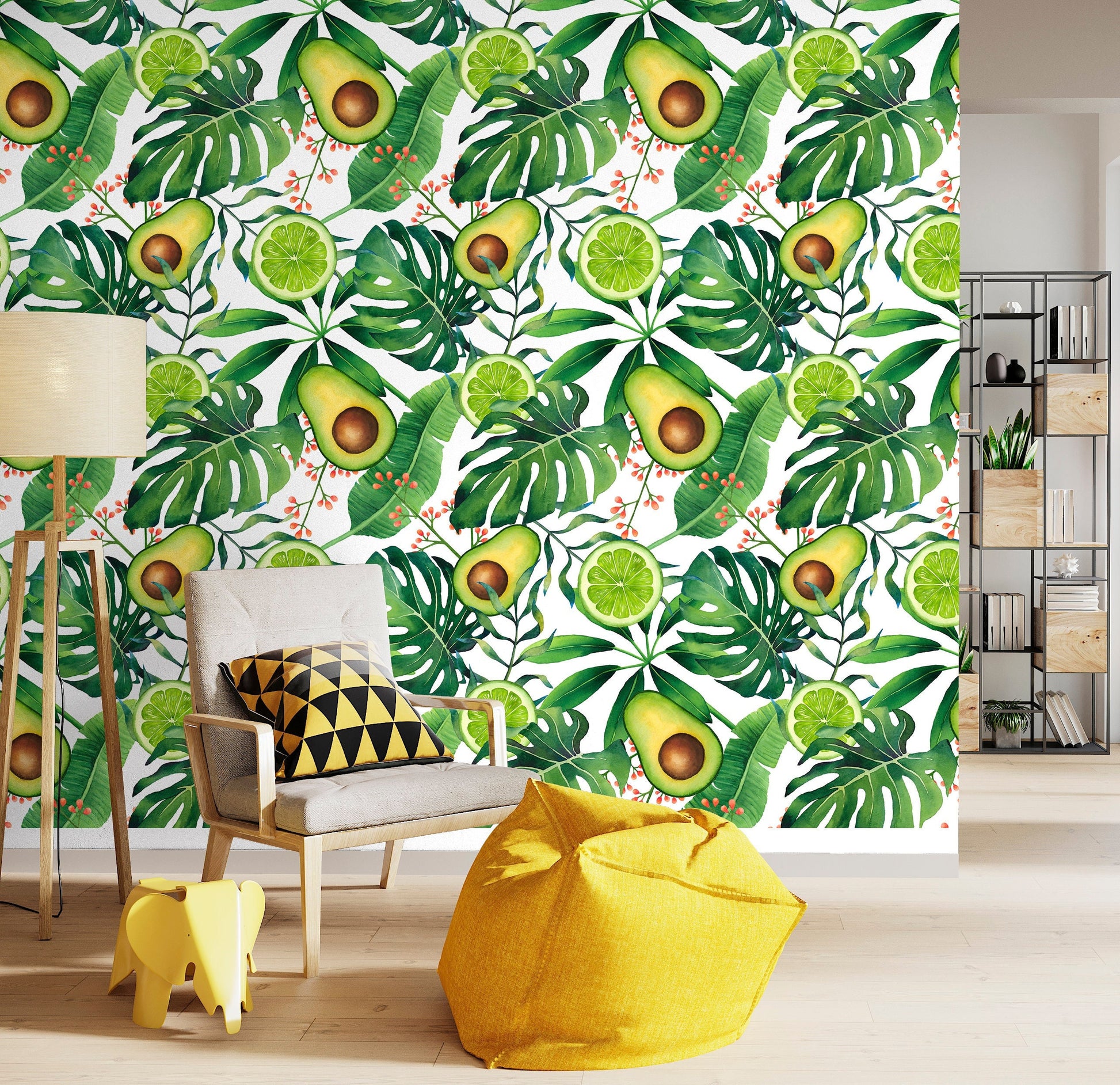 Avocado Wallpaper Peel and Stick, lime Green Wallpaper, Monstera Wallpaper, Tropical Wallpaper, Removable Wall Paper