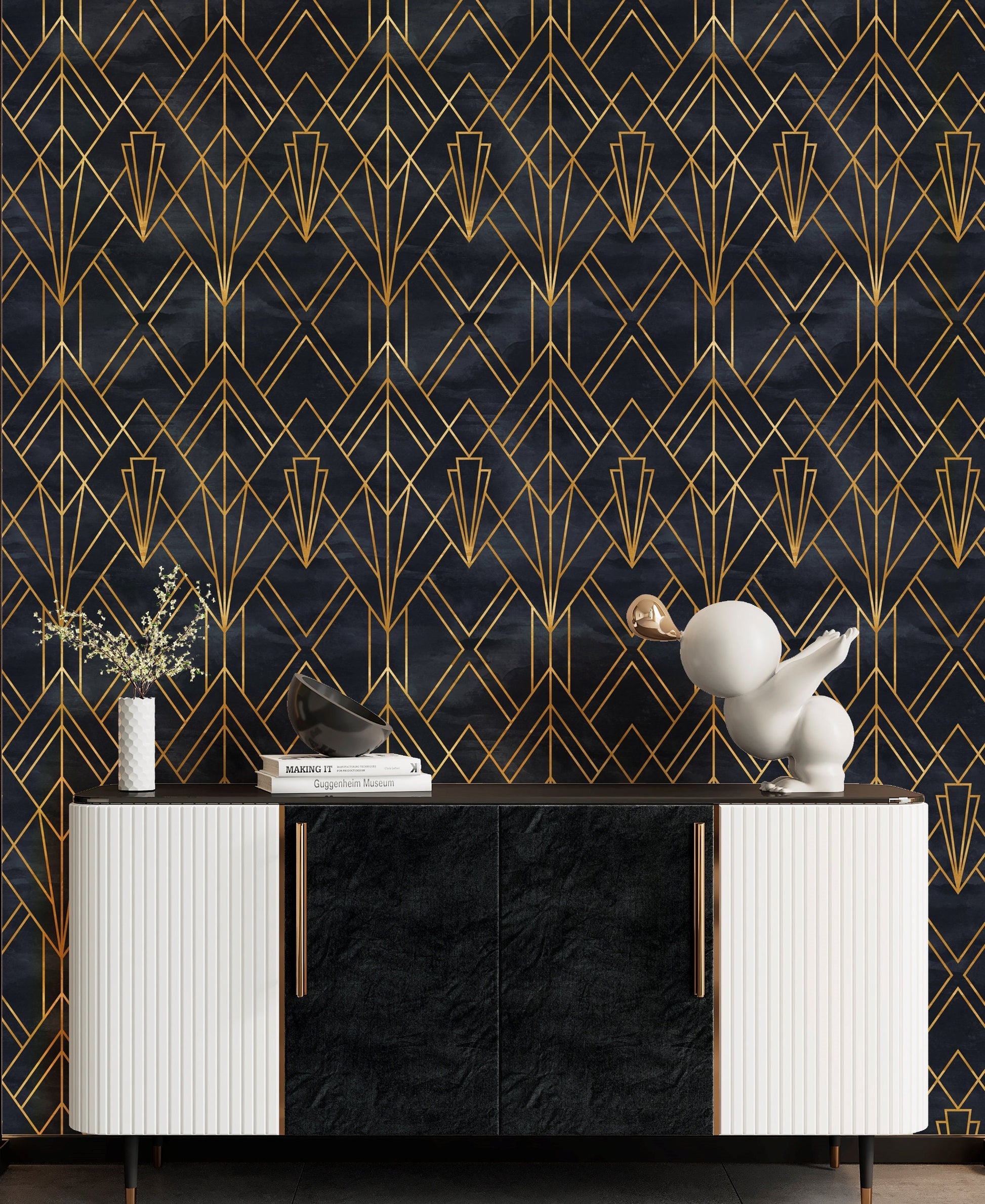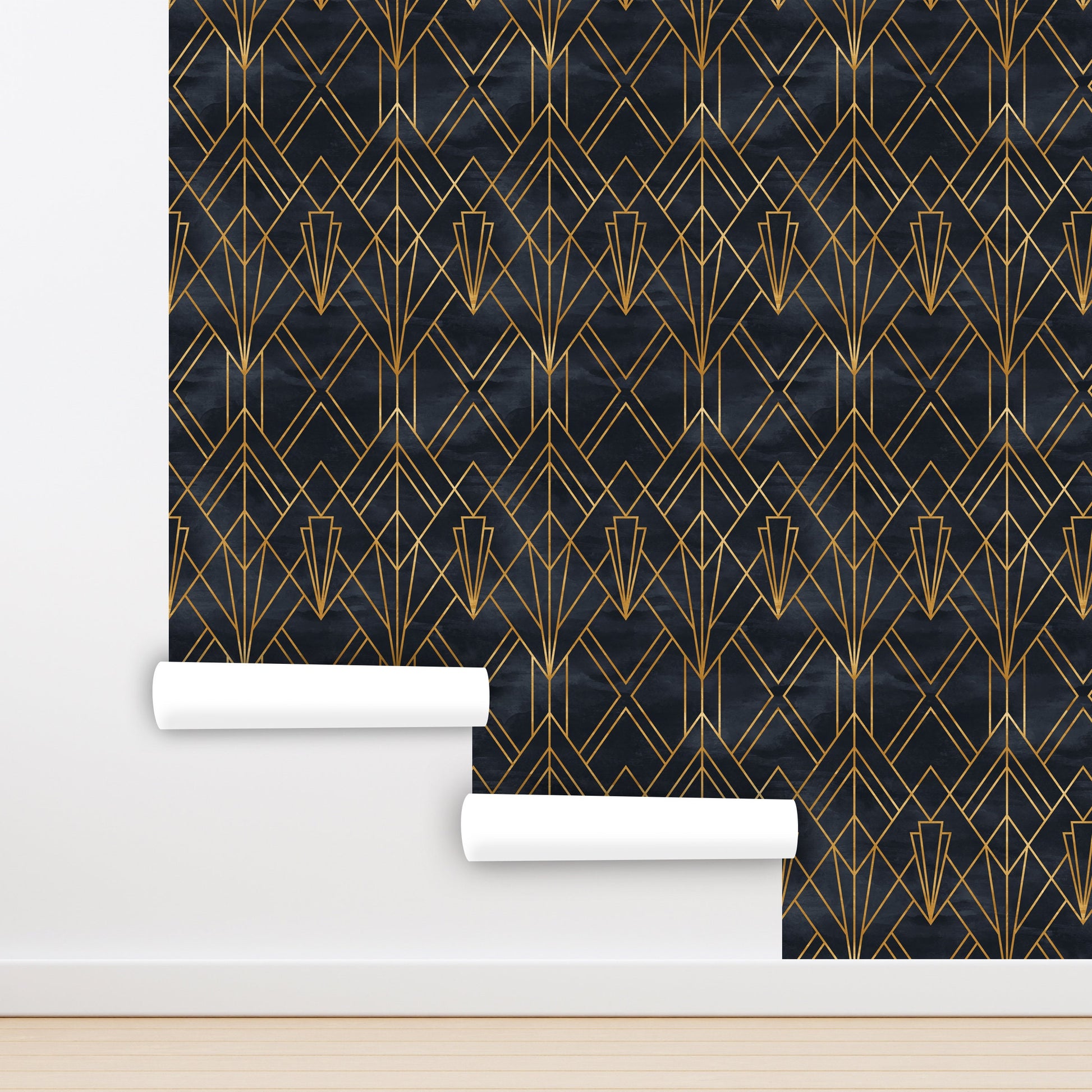 Black and Gold Geometric Wallpaper Peel and Stick, Art Deco Wallpaper, Vintage Wallpaper, Removable Wall Paper