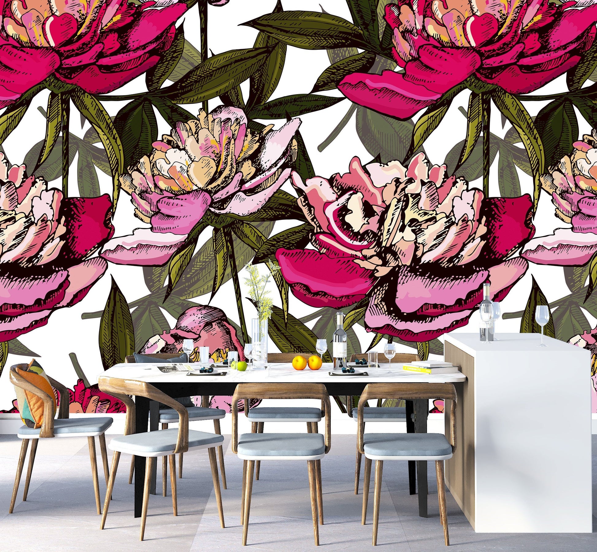 Bold Wallpaper Peel and Stick, Big Flower Wallpaper, Peony Wallpaper, Removable Wall Paper