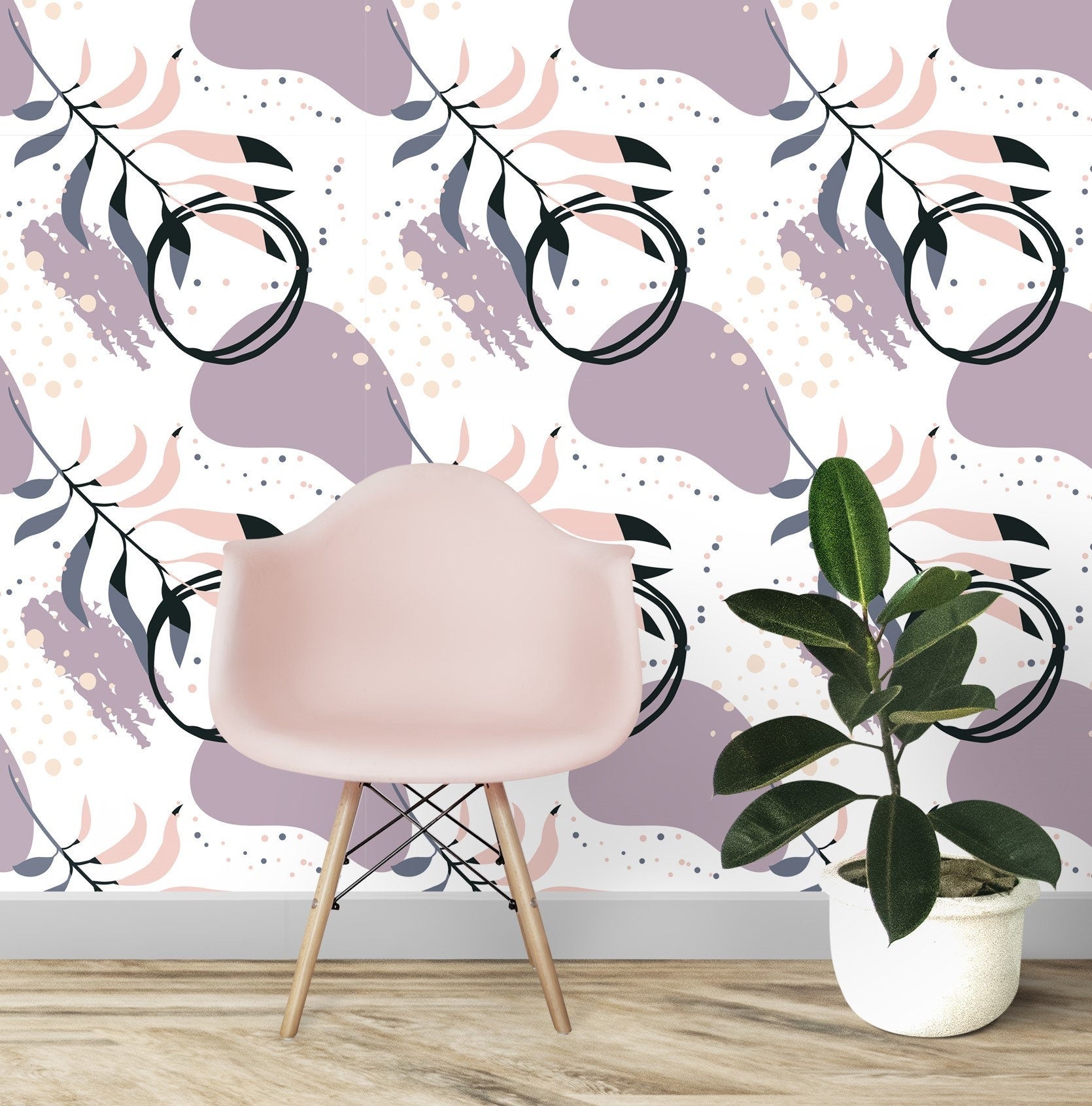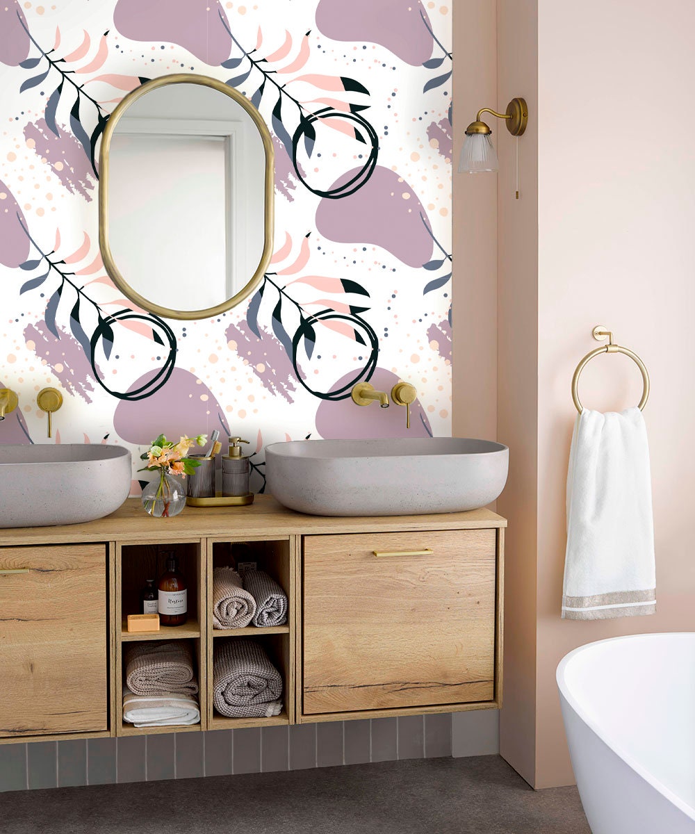 Circle Wallpaper Peel and Stick, Palm leaf Wallpaper, Abstract Wallpaper, Brush Stroke Wallpaper, Removable Wall Paper