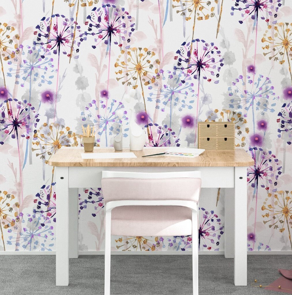 Dandelion Wallpaper Peel and Stick, Watercolor Floral Wallpaper, Removable Wall Paper