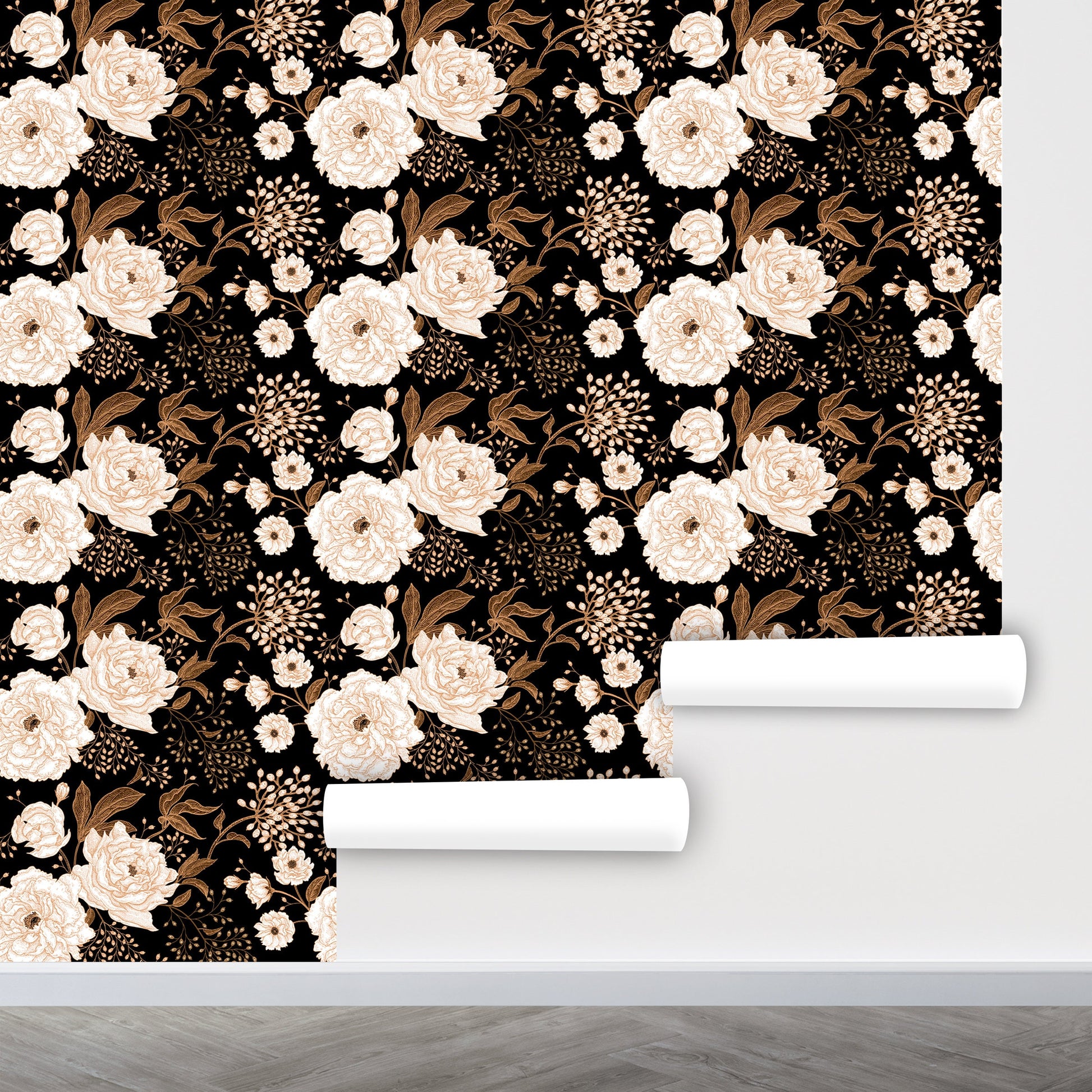 Dark Floral Wallpaper Peel and Stick, Black and White Wallpaper, Big Flower Wallpaper, Peony Wallpaper, Removable Wall Paper