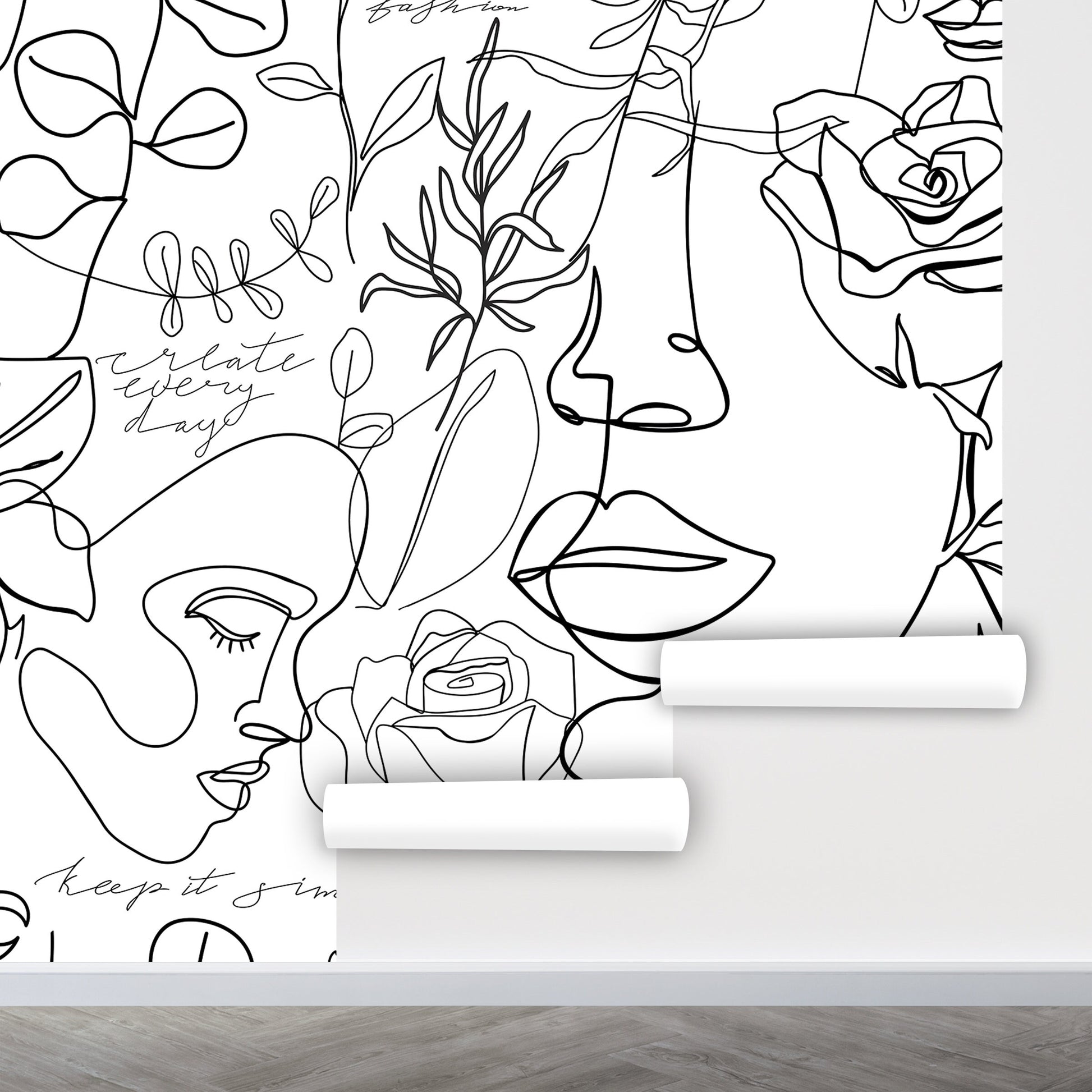 Faces Wallpaper Peel and Stick, Line Art Wallpaper, Black and White Wallpaper, Removable Wall Paper