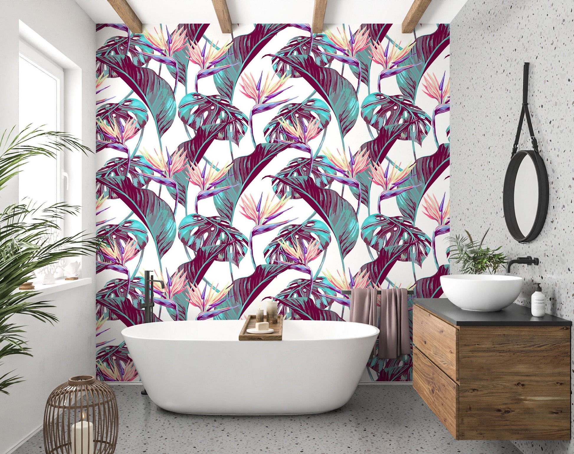 Monstera Wallpaper, Big Leaves Wallpaper Peel and Stick, Palm Tree Wallpaper, Tropical Wallpaper, Removable Wall Paper