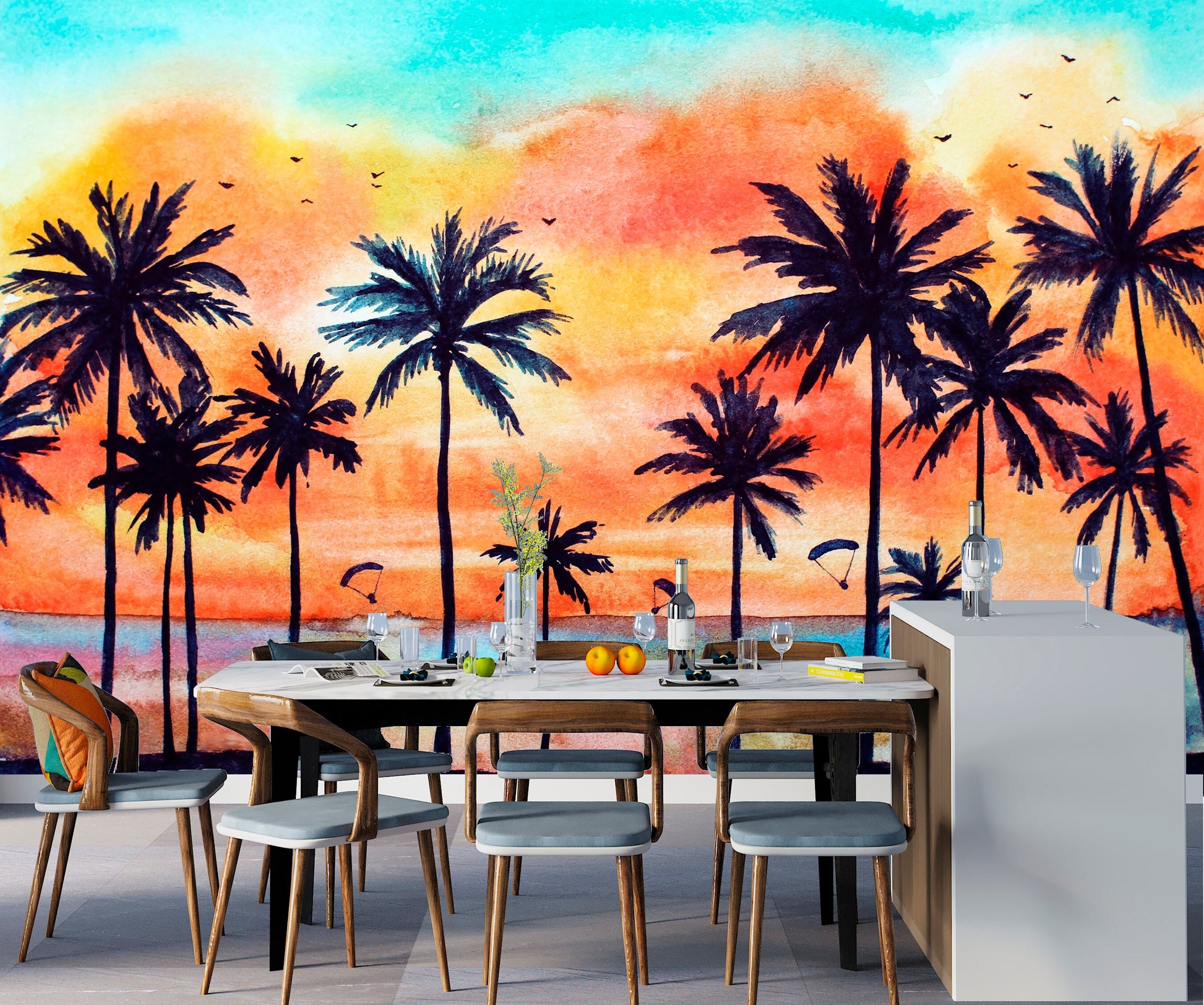 Palm Beach Wallpaper Peel and Stick, Sunset Wallpaper, Watercolor Wallpaper, Removable Wall Paper