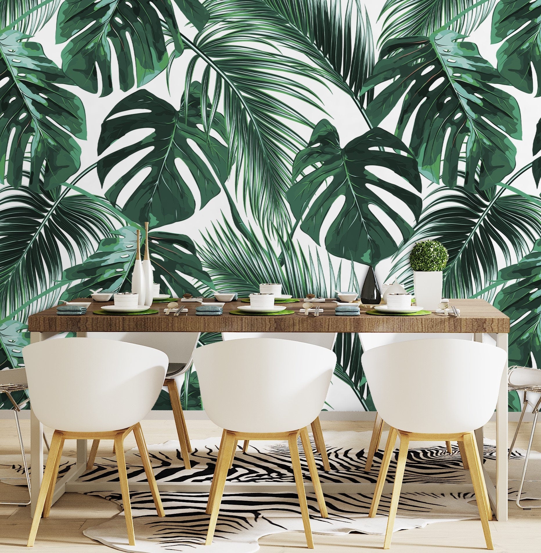 Palm Wallpaper Peel and Stick, Monstera Wallpaper, Big Leaf Wallpaper, Tropical Leaf Wallpaper, Removable Wall Paper