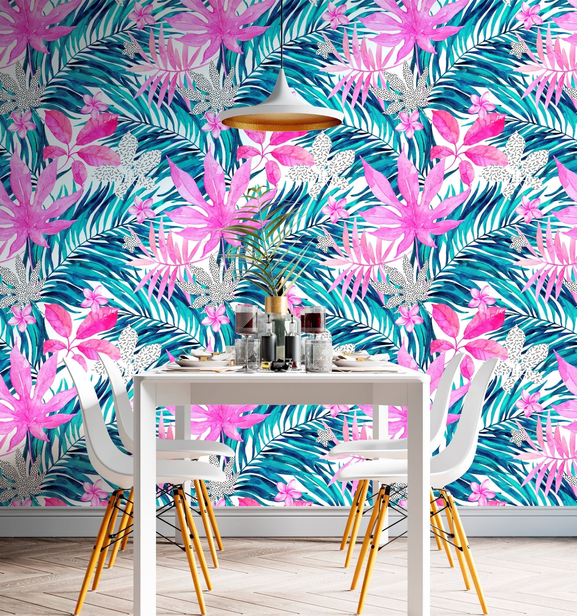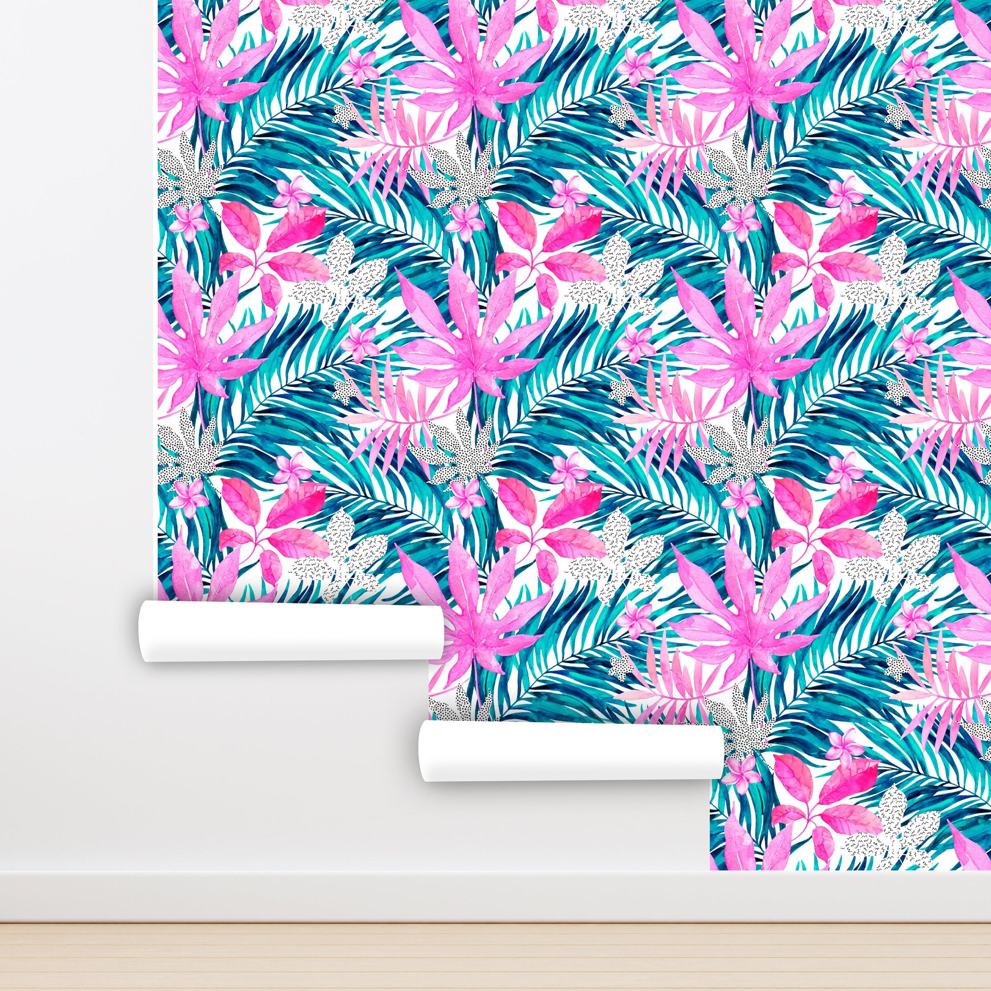 Palm Wallpaper Peel and Stick, Pink Leaf Wallpaper, Exotic Wallpaper, Tropical Wallpaper, Removable Wall Paper