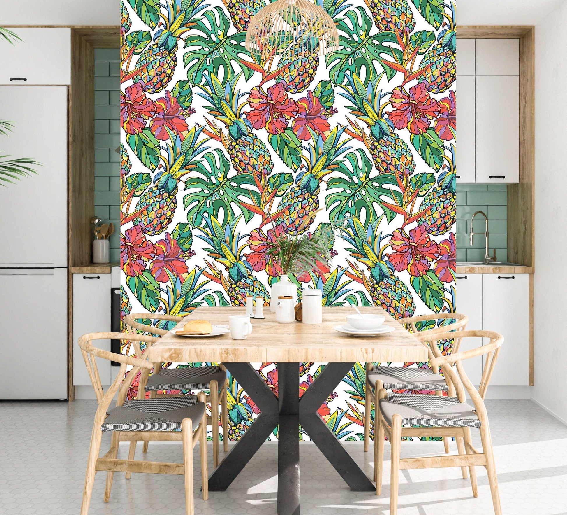 Pineapple Wallpaper Peel and Stick, Monstera Wallpaper, Tropical Wallpaper, Removable Wall Paper