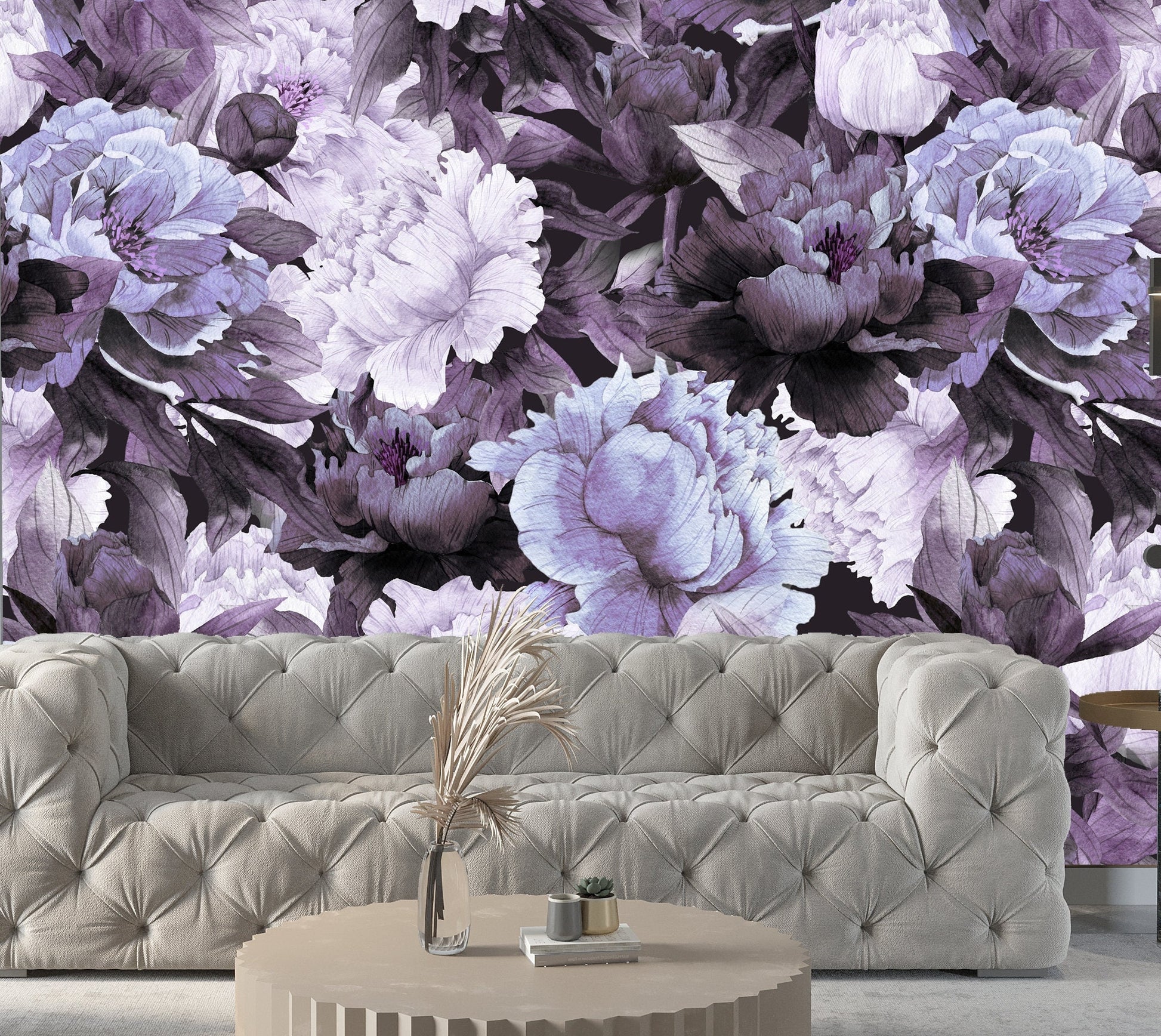 Purple Wallpaper Peel and Stick Dark Floral Wallpaper Peony Removable Wall Paper